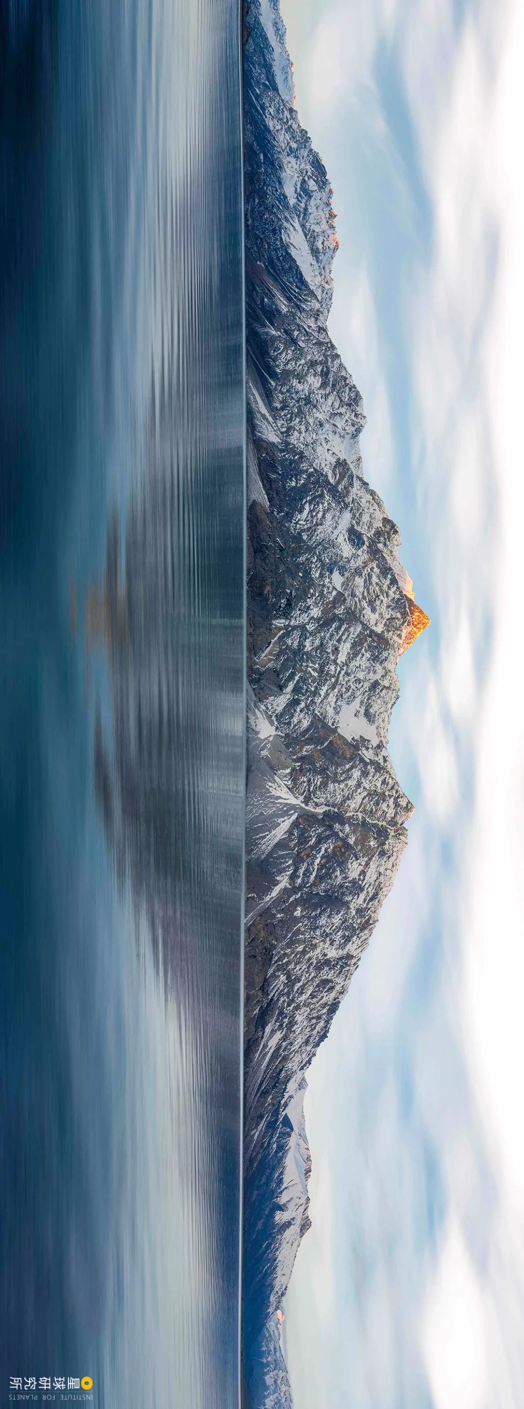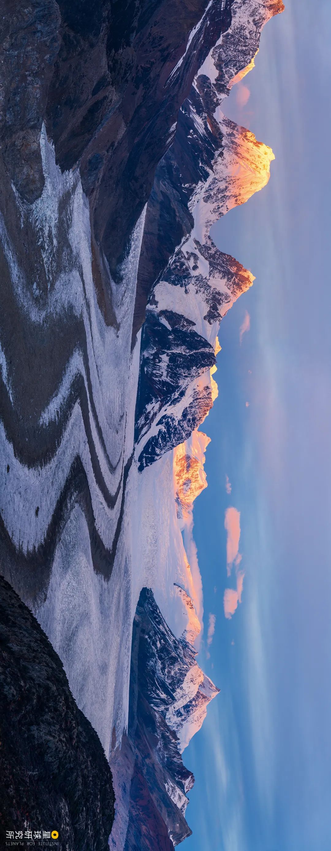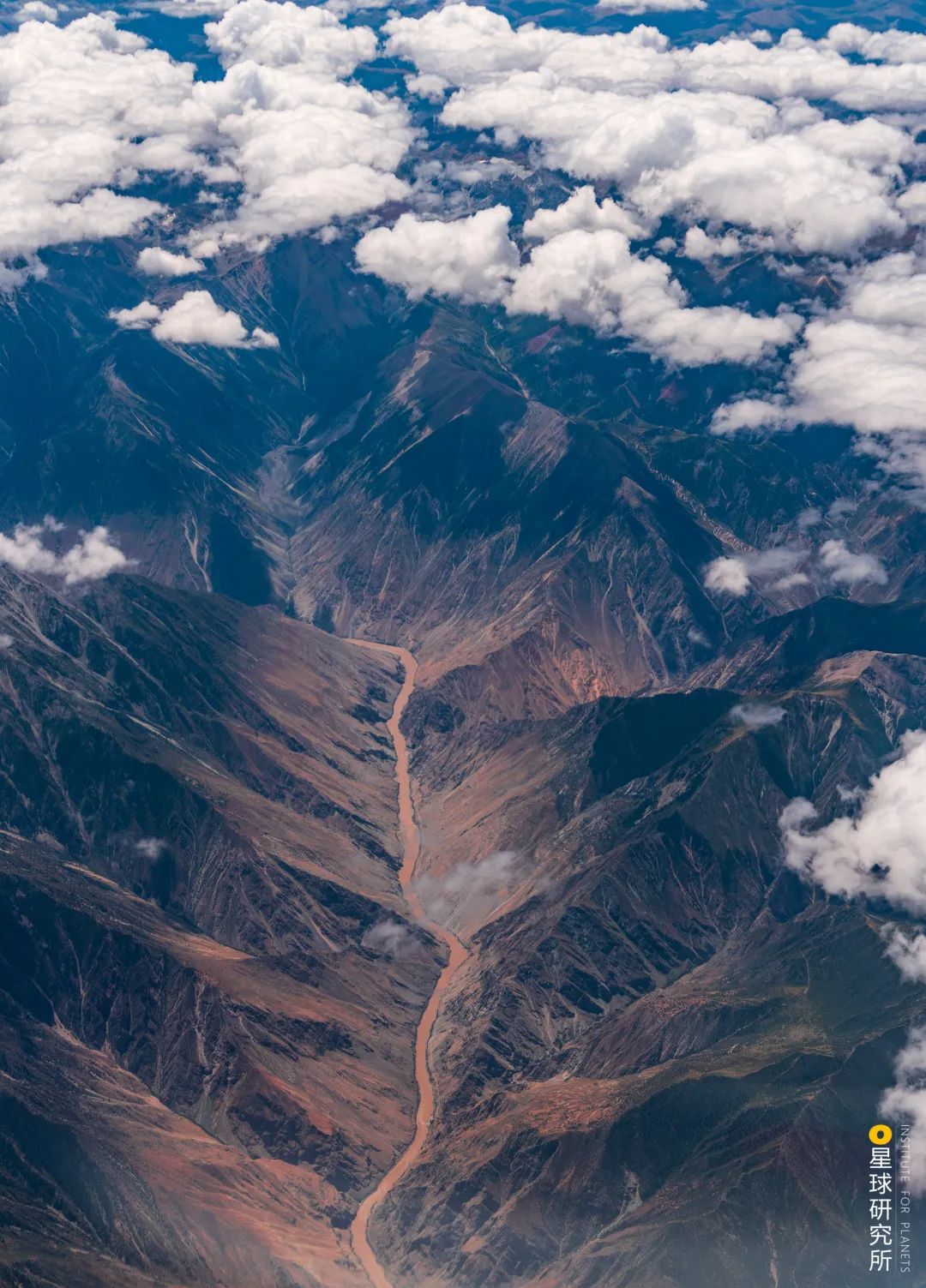 (請橫屏觀看,由北向南眺望崗日嘎布山脈“雪嶺長城”,攝影師@阿怪Zax,標註@梯田/星球研究所)