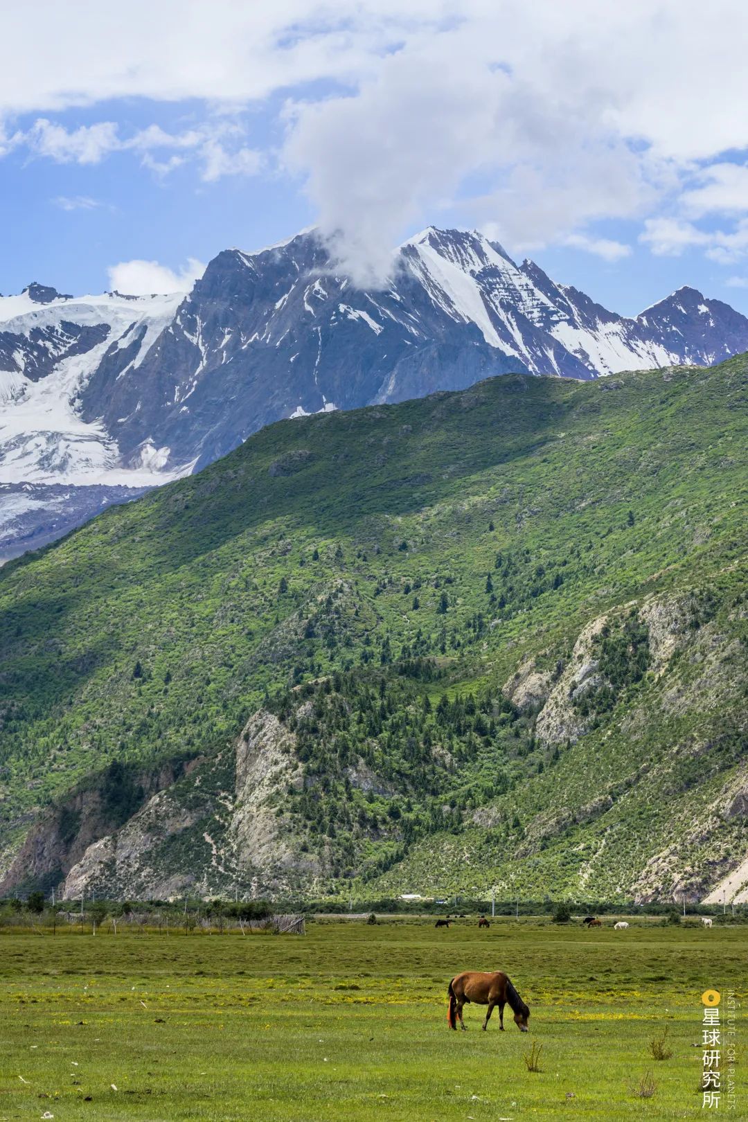 (然烏湖周邊雪山下吃草的牧馬,攝影師@吳淵)
