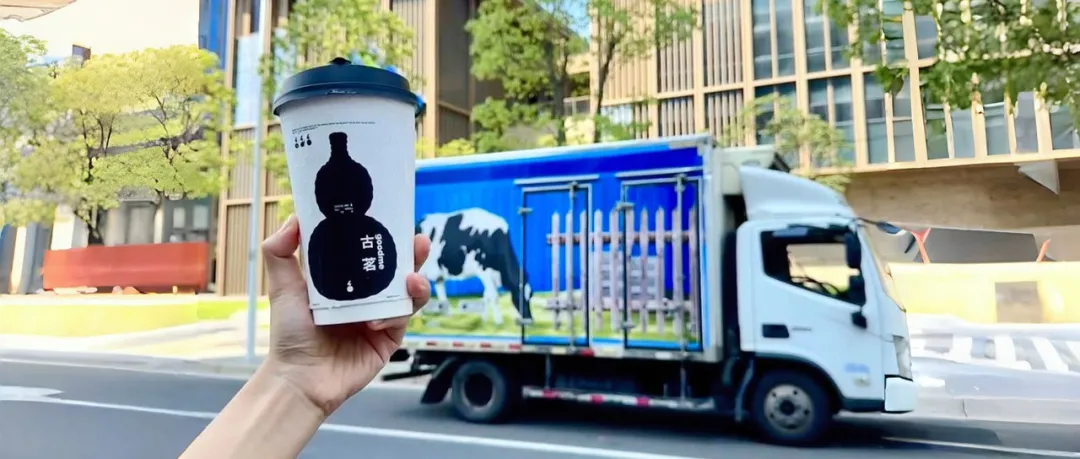 我看到,古茗的冷鏈車“變裝了”,牧場、奶牛、新鮮牛奶為背景,寫着“你的冷鏈牛乳正在運輸中”。