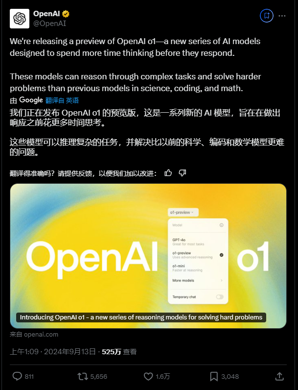 今天凌晨,我們終於看到了"草莓",只不過它的名字不是GPT5,而是o1。
