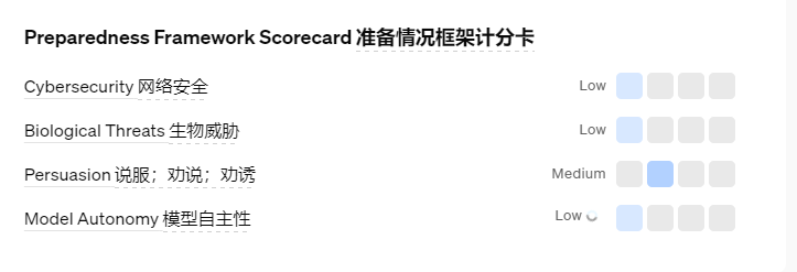 之前GPT4安全測試,生物威脅等級為低,而在o1中,生物威脅不僅升級到了化學,生物,核子,放射威脅,等級也提升到中。