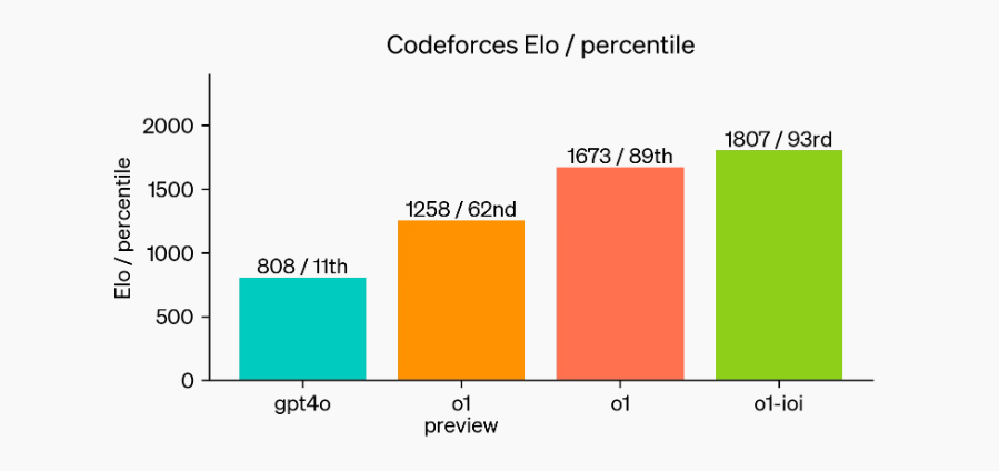在信息奧林匹克上,經過微調的o1,分數整整提高到了1000分。這是什麼概念呢?在人類中,只有**7%的參賽者比AI強,剩下的93%**都被AI擊敗了!