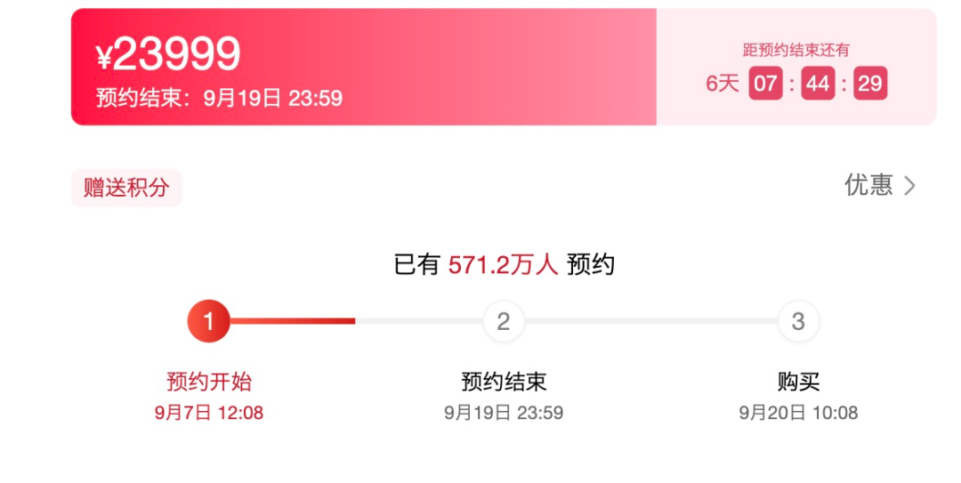 從目前的產品預約情況來看,截至2024年9月13日16時,**產品預約人數已超過571萬人。**這其中除了真心想買的、湊熱鬧的,還有不少代搶的。