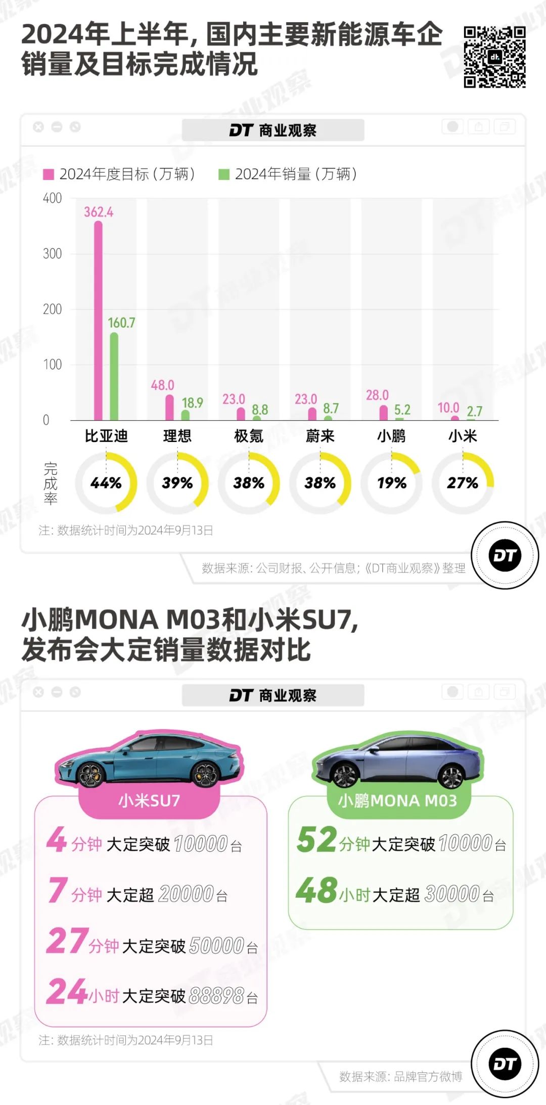 更嚴峻的現實是,從2024上半年部分新能源車企的銷量及年度目標完成情況來看,小鵬上半年銷量為5.2萬輛,僅完成年度目標(28萬輛)的19%,而它的兩位“兄弟”——理想賣出了18.9萬輛,蔚來賣出了8.7萬輛,完成率分別是39%和38%。