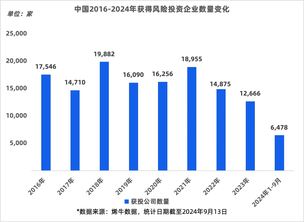 我們再看下2016年到2024年獲得風險投資的企業數量。