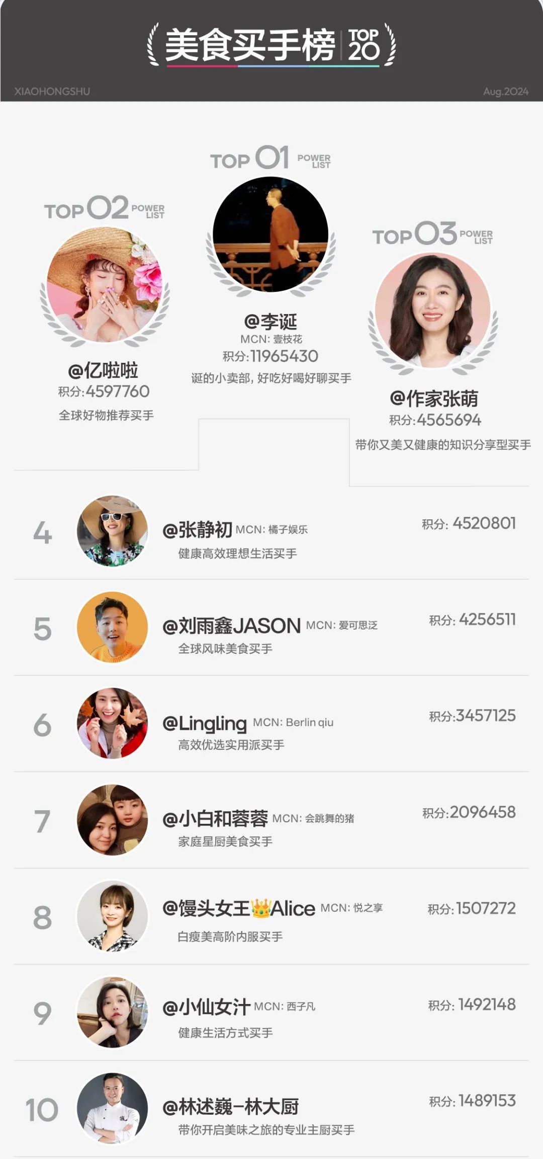 現階段,小紅書單場帶貨能超過千萬的主播還不多,還是大家之前熟知的董潔、章小蕙、伊能靜等,最近新上榜的千萬買手只有時尚博主豆豆本豆。新晉爆火的李誕,則榮登小紅書電商8月《買手商業價值榜》美食垂類的第一名。