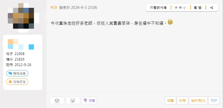 “香港01”節選出來的這些評論都算是比較温和的,而在香港著名的網絡社區“香港討論區”上,那兒的香港網友對他的遭遇的評論可就沒有這麼客氣了:
