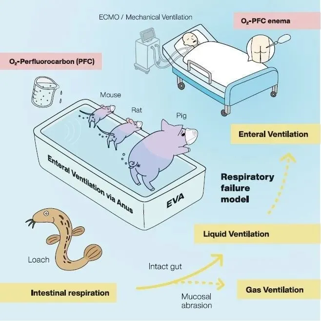 他們進行了實驗,當齧齒動物和豬在低氧環境中,無法正常使用肺部呼吸時,向它們的肛門內注射富氧液體(全氟化碳),同樣能避免它們出現嚴重的呼吸衰竭。