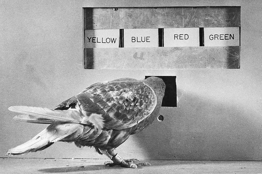 他開始對鴿子進行訓練,讓鴿子查看屏幕,當屏幕上出現船(目標)的圖像時,鴿子必須不停地啄食船的圖像,才能獲得食物。