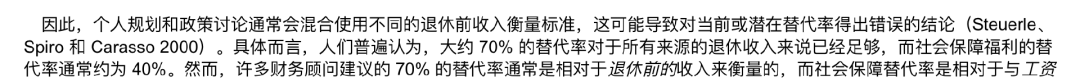 第二個是養老金替代率,是指打工人退休時的養老金領取水平與退休前工資收入水平之間的比率。