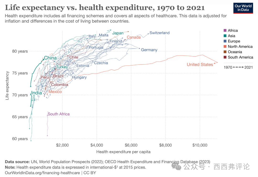 替代率、退休年齡、人均預期壽命的不可能三角,必須放棄一個。美國的思路最狠,雙管齊下,人均壽命下降,退休年齡上升。美國的退休年齡(1960年後出生的美國人)已經上調到了67歲,而人均預期壽命從2019年的78.8歲,下降到2021年的76.4歲和2022年的77.5歲。