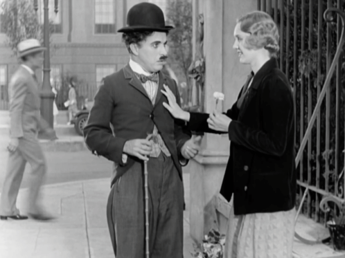 後來,盲女在流浪漢的幫助下治好了眼睛,開了一家漂亮的花店;而流浪漢在她復明前被抓進了監獄,對方甚至不知道他長什麼樣。
