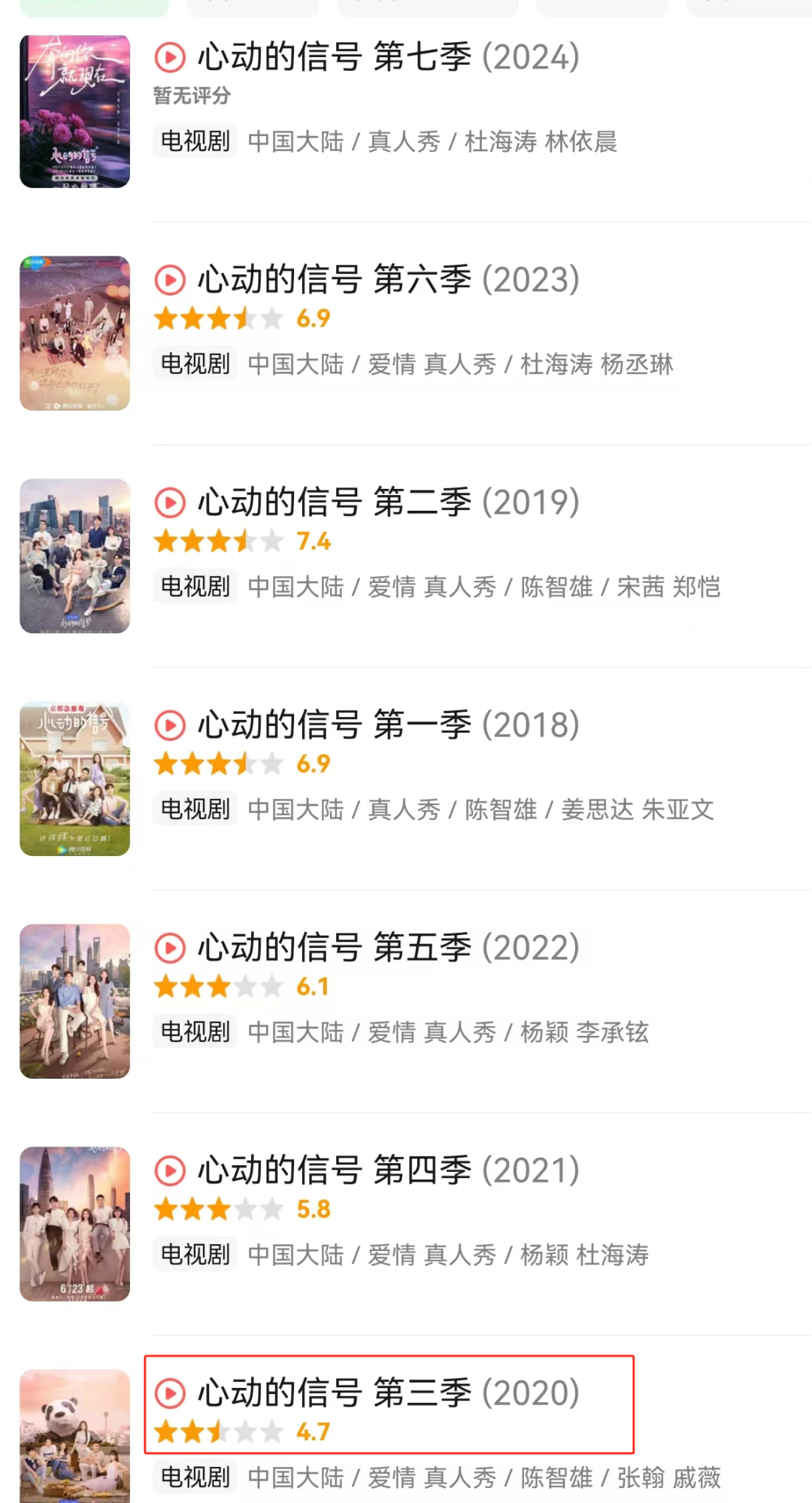 作為延續了七季的綜藝,這並不是《心動的信號》第一次口碑崩盤。