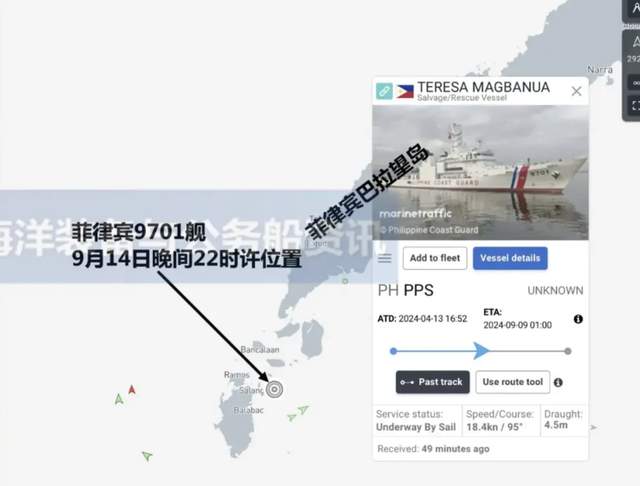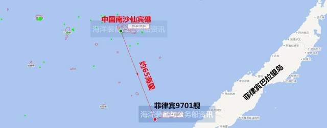 其試圖模仿“馬德雷山號”非法座灘仁愛礁,採用“新模式坐灘”。根據航跡圖顯示,菲9701艦已經繞過巴拉望島南部布利盧延外海的北巴拉巴克水道,進入蘇祿海。