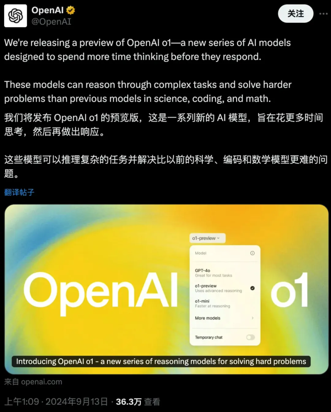 9月13日,Open AI發佈了全新一代的大模型預覽版,這個在內部代號為“草莓”的模型,在問世的一瞬間,還是激起了業內的震動。