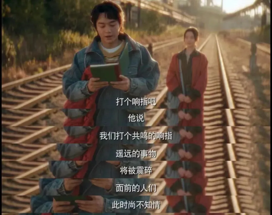 在此後的國產懸疑劇中,我們經常能看到一些反覆出現的東北景觀——衰敗封閉的東北小城,蘇聯式的城市建築,重工業廠房煙囱湧出白色濃煙,從舊世紀駛來的火車轟鳴着遠去。放眼望去,城市沒有一絲綠意,彷彿蒙着一層髒灰色的暗淡的雪。與之相配的是班宇,在《漫長的季節》裏,他借王陽的口説了自己的詩。