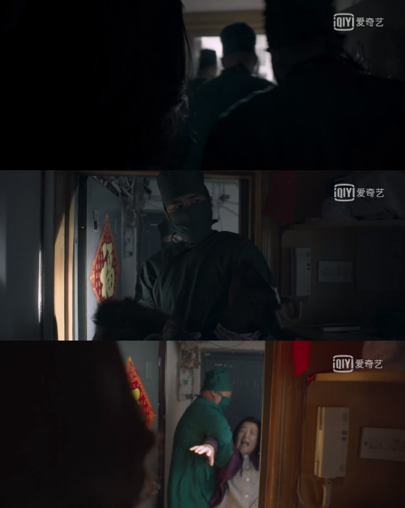 一羣戴着口罩,穿着防護服的大夫來到家,從櫃子底下拖出一頭小牛犢,牛犢慘叫。