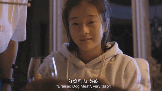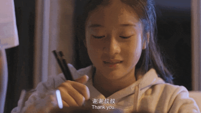 女兒懂事地接住了狗肉,嚥了下去,還説了句“謝謝叔叔”。