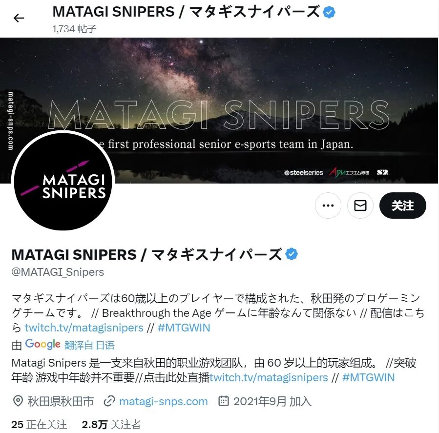 這隻名叫“MATAGI SNIPERS”的夕陽紅電競隊伍,建立初始由66歲至73歲的8名爺爺奶奶組成,平均年齡高達69歲,於2021年9月在日本秋田縣橫空出世。