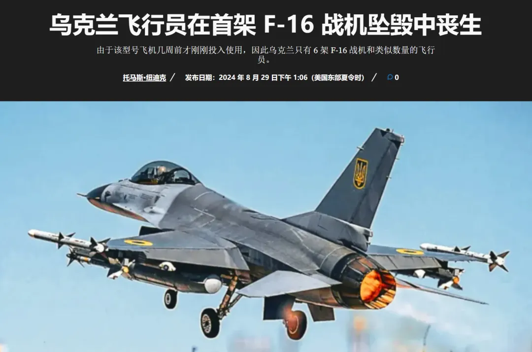 8月26日,烏克蘭宣佈一架剛接收不久的F16墜毀,還導致飛行員喪生。