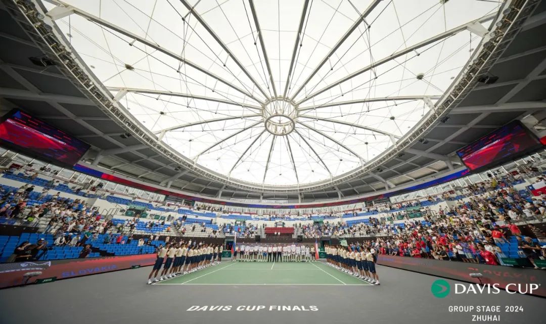 2024年,終於有一項百年曆史的傳奇隊際賽事落地中國。戴維斯盃創辦於1900年,每年舉行,由國際網球聯合會(ITF)主辦,是世界上最受矚目的男子網球團體賽事,如今又名“網球世界盃”。9月10-15日,2024戴維斯盃決賽小組賽在全球四座城市舉行。其中珠海橫琴國際網球中心承辦C組賽事,中國球迷現場見證了美國、德國、智利、斯洛伐克四國網球高手的強強對決。這是戴維斯盃決賽首次進入中國乃至亞洲。2024年的“中國賽季”,也由戴維斯盃來開啓。