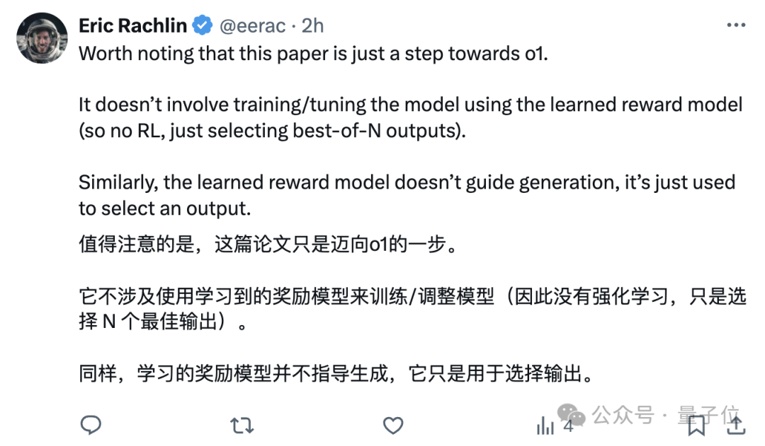 但也正如網友所説,這篇論文總歸來説是邁向OpenAI o1的一步。
