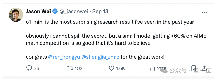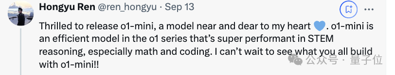 當模型第一時間發佈時,他曾表示o1-mini是他最喜歡的一款模型。