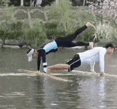 古有達摩一葦渡江,今有老表側方停竹。