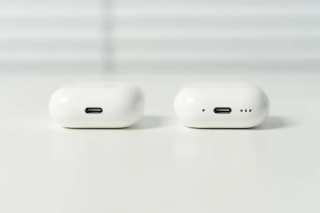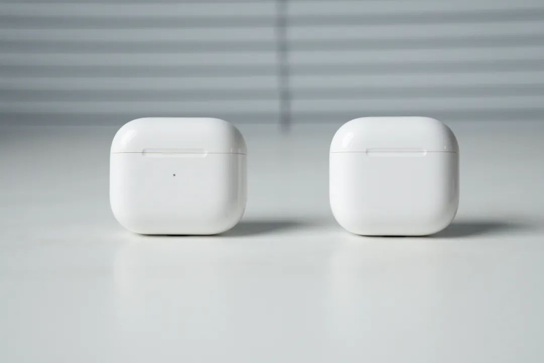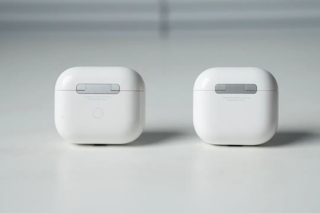 相比 AirPods 3,這次 AirPods 4 最大的變化應該就在它的外觀,如果把它倆放一起,你一眼就能看出 AirPods 4 充電盒體積明顯小了一圈,而且它把提示燈隱藏得很好,正面幾乎看不到開孔。