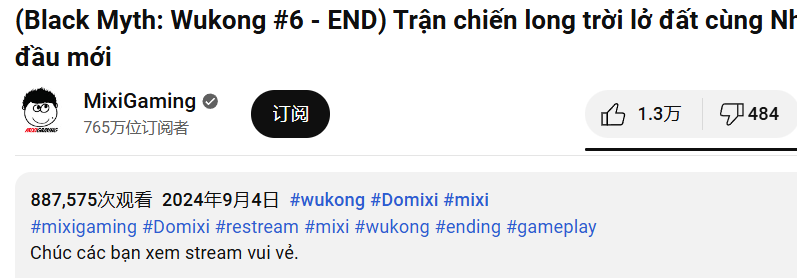 8月26日,成立不到半年的企鵝組(Cánh Cụt Team)帶來了另一份《黑神話:悟空》的越化補丁。相較於趕工痕跡較重的紅組,企鵝組的錯譯漏譯問題偏少,整體質量更高,目前企鵝組的翻譯已被多位越南主播用於直播,甚至包括擁有765萬粉絲的頂流主播MixiGaming。
