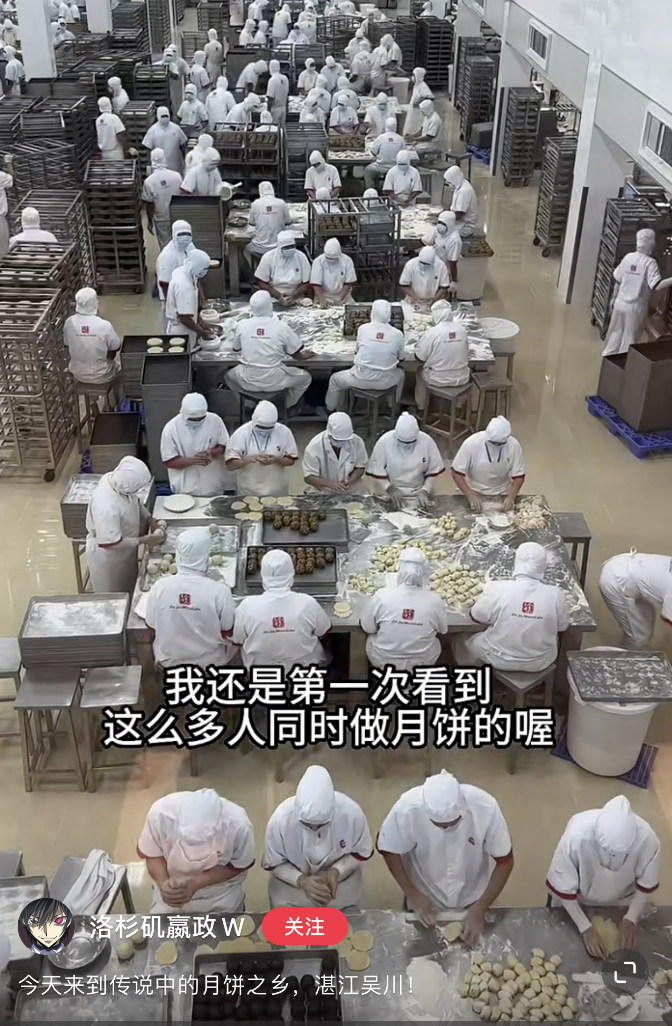 比如在金九月餅廠,3000名員工日夜三班倒,連續生產40天,才能做完今年中秋出售的月餅。