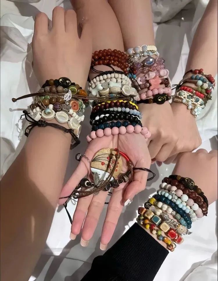 文玩女孩們大多會人手十條手串起步,手串從陶瓷到水晶再到玻璃,胳膊不戴滿絕不撤退。