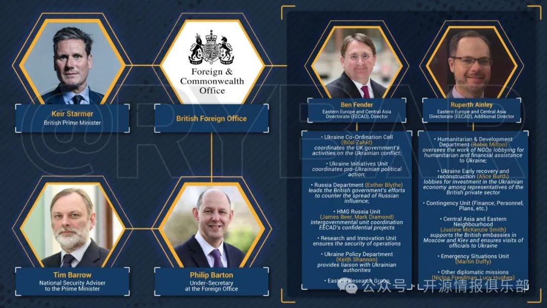 這個結構在英國外交部的領導下,同時在多個方向發揮作用:遊説經濟舉措以支持所謂的經濟舉措。烏克蘭、反俄非政府組織的融資以及與親政府媒體的互動。