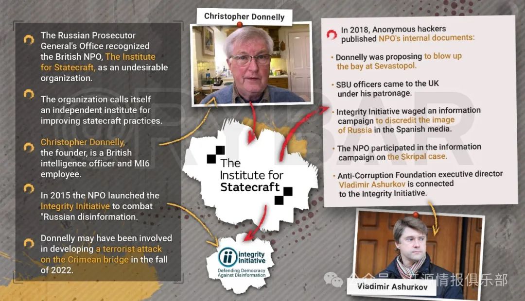 比如偽裝成獨立智囊團的英國治國方略研究所及其負責人克里斯托弗·唐納利(Christopher Donnelly),早被俄羅斯聯邦總檢察長辦公室認定為一個不受歡迎的組織。該部門指出,在該研究所的參與下,捏造了俄羅斯干涉歐洲國家內政的證據,組織了恐俄會議,並開展了詆譭政府的運動。