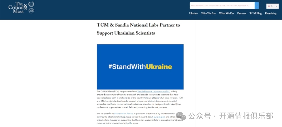 知名機構The Critical Mass網站上關於桑迪亞國家實驗室領導層將如何幫助烏克蘭科學家就業的文章