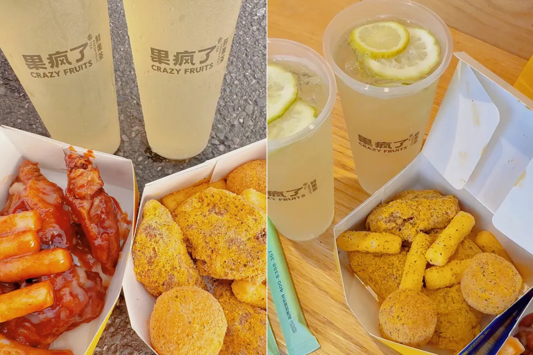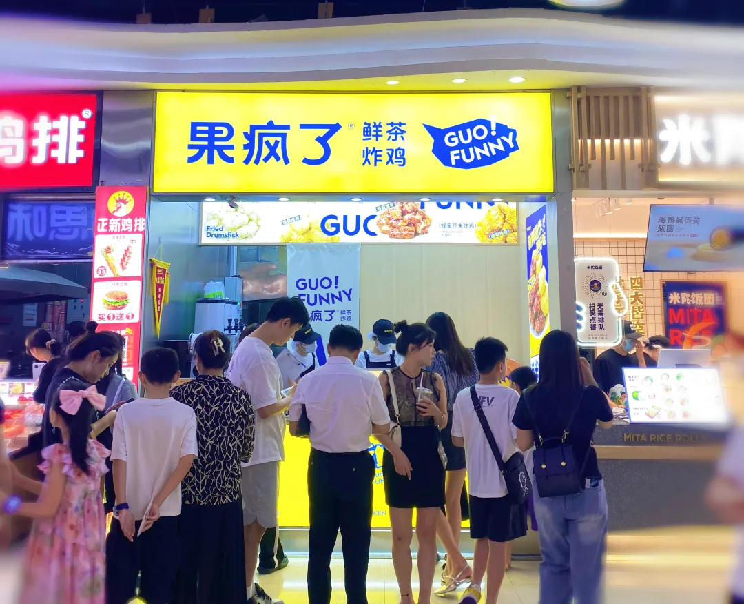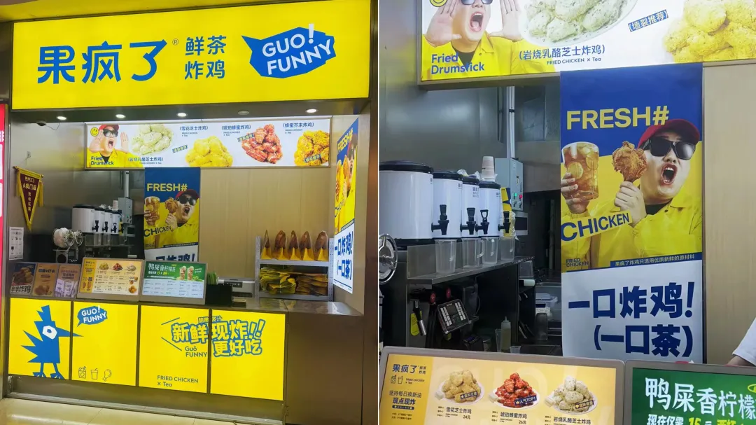 她把長沙萬家麗的門店作為實驗店,改名為:果瘋了鮮茶炸雞,把炸雞和茶飲區域按照1:1的比例進行了店型改造。
