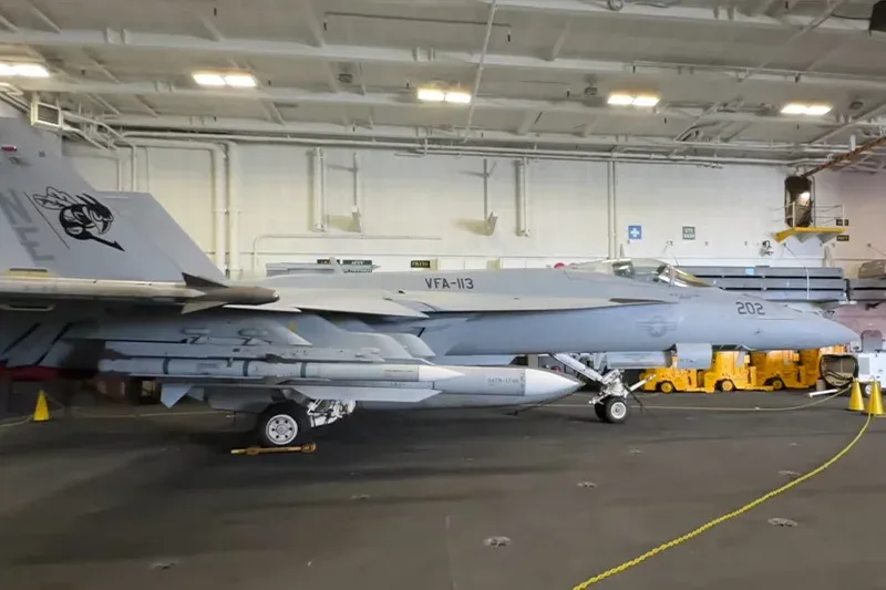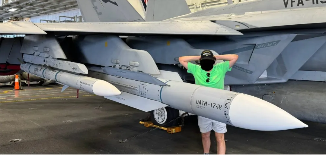 決定性的證據則來自於今年“環太平洋-2024”聯合軍事演習,在“環太平洋-2024”中,美國海軍參演的“卡爾文森”號航母打擊羣編內第113戰鬥攻擊機中隊(VFA-113)的一架F/A-18E型戰鬥機,被拍到在機庫中掛載了一枚“標準-6”艦空導彈的空射版訓練彈,型號編號為DATM-174B。這起碼證明,AIM-174B導彈的掛飛彈已經裝備部隊了。