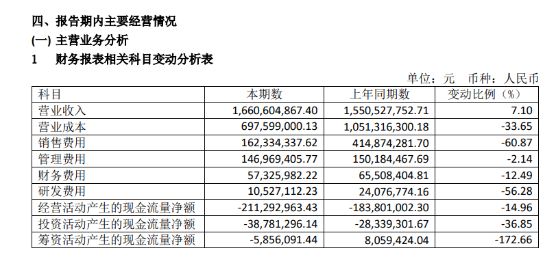當然,業績主要是淨利潤變不錯的情況,從財報來看,主要是營業成本、銷售費用等硬性支出的大幅下滑。比如今年上半年營業成本同比降低了33.65%、銷售費用同比減少了60.87%;去年全年營業成本大幅減少47.88%等等。