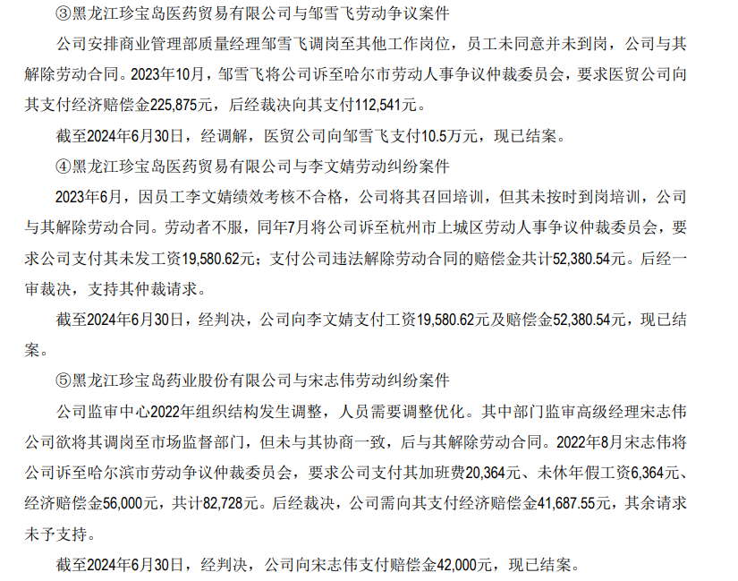 反倒是作者在半年報中看到了多起勞動糾紛。上半年,珍寶島及其子公司因為此前存在的人員優化、違法解除合同等勞動糾紛案件,給3名員工賠付了近22萬元的賠償款。
