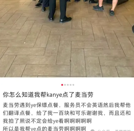 對中國路人也相當友好,有個熱心網友去買快餐偶遇侃爺,幫忙翻譯之後,保鏢還給了他100人民幣答謝。總之從各種言行來看,相當的“根正苗紅”。