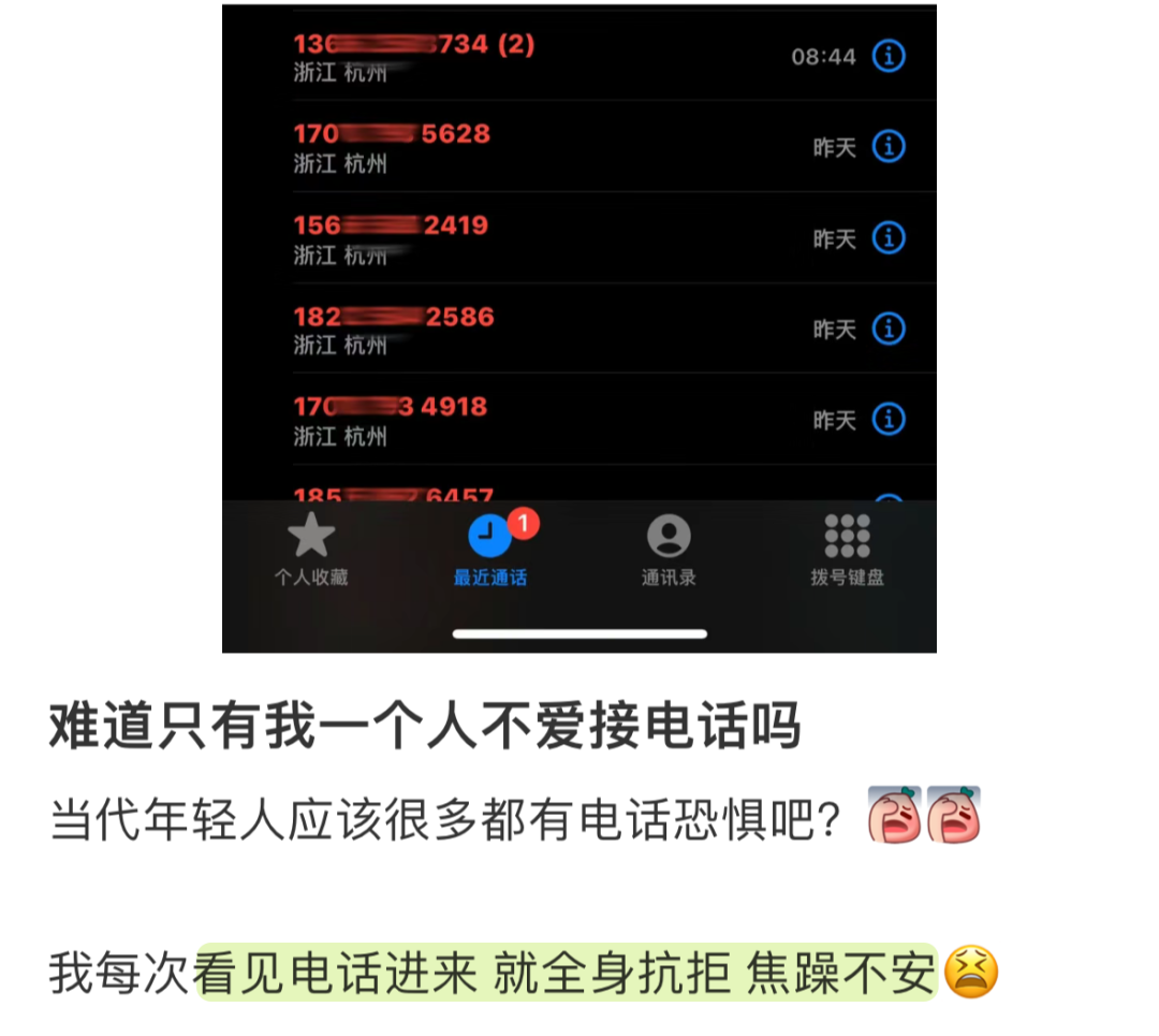 在小紅書上,關於 “ 害怕接電話 ” 的筆記多達十幾萬篇。