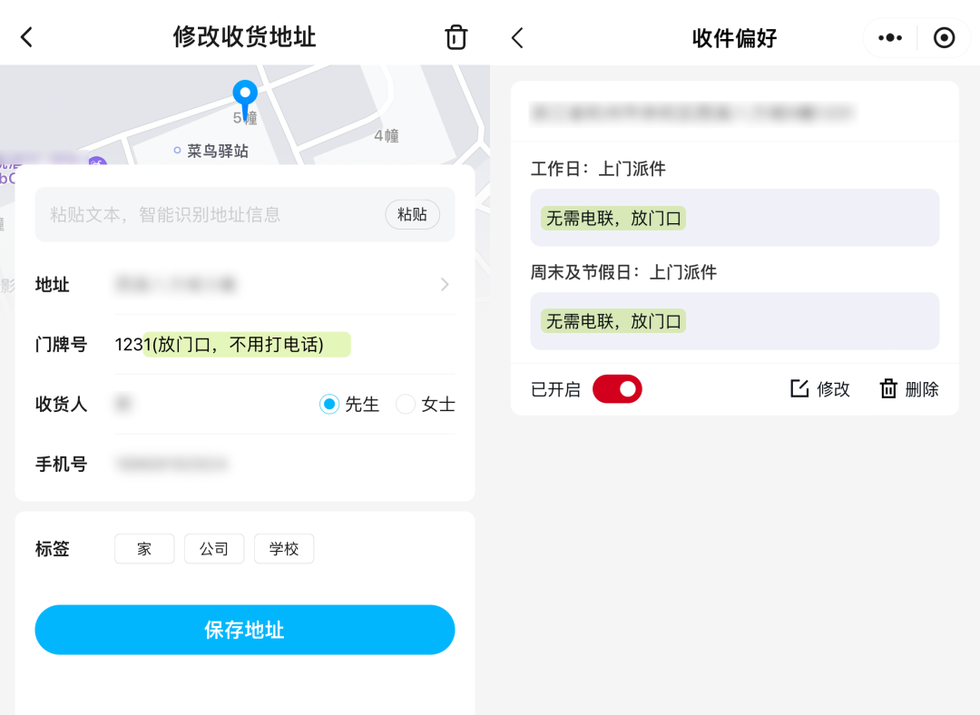 有的在外賣地址備註 “ 不用打電話 ” ,把快遞收件偏好設置為 “ 無需電聯 ” 。