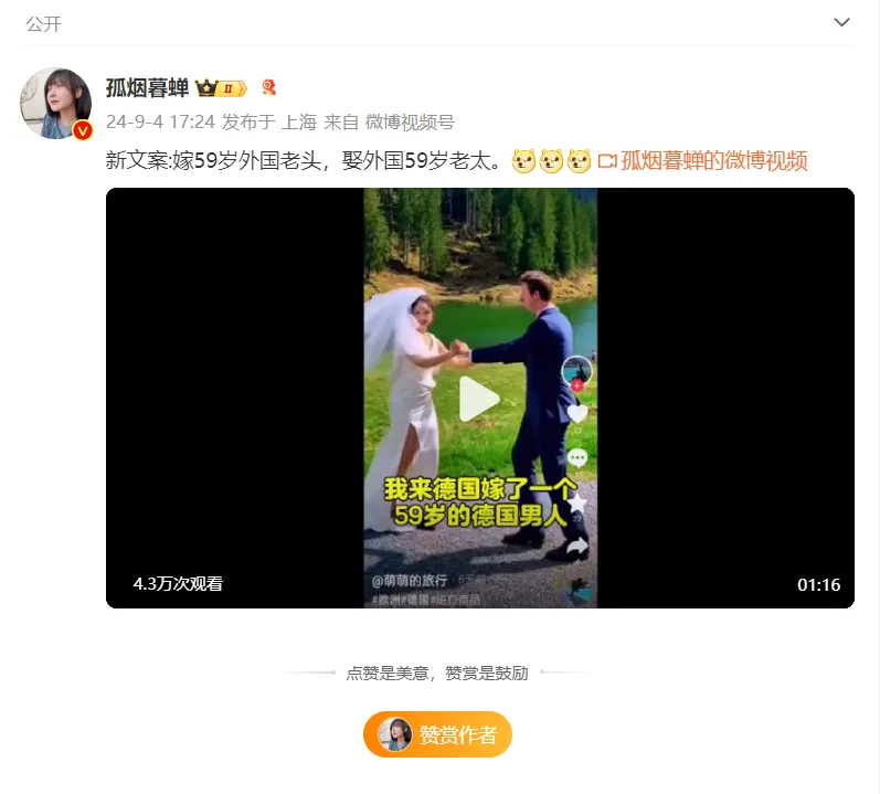 嫁給59歲德國老頭不是錯,但扯淡説別人罵你賣國,這就是不知廉恥_風聞