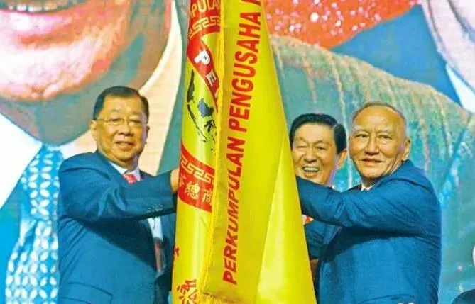張錦雄(左)接過紀輝琦(右)傳遞的印尼中華總商會會旗