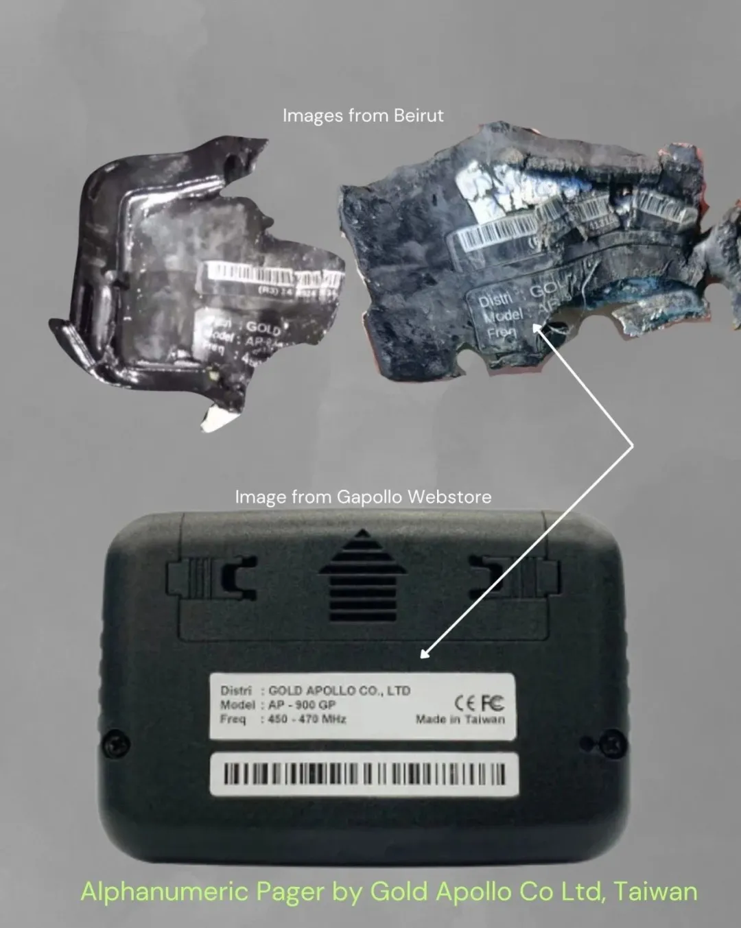 被引爆的傳呼機的型號是“金阿波羅 AR-924”型,產地為中國台灣。 據有報道稱,這些通訊設備基本上都來自於伊朗,近日才被分發給真主黨特工。