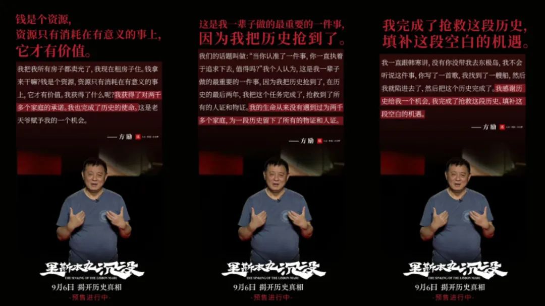 這是方勵近十年投入最大的一件事,也是他本人所説“自己這一生中做過的最重要的事”——拍攝紀錄電影《里斯本丸沉沒》。