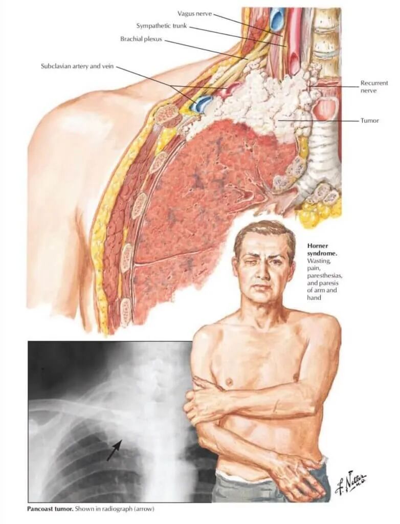 我腦子裏飛速搜索這個詞彙,Pancoast腫瘤。啊!肺上溝瘤!