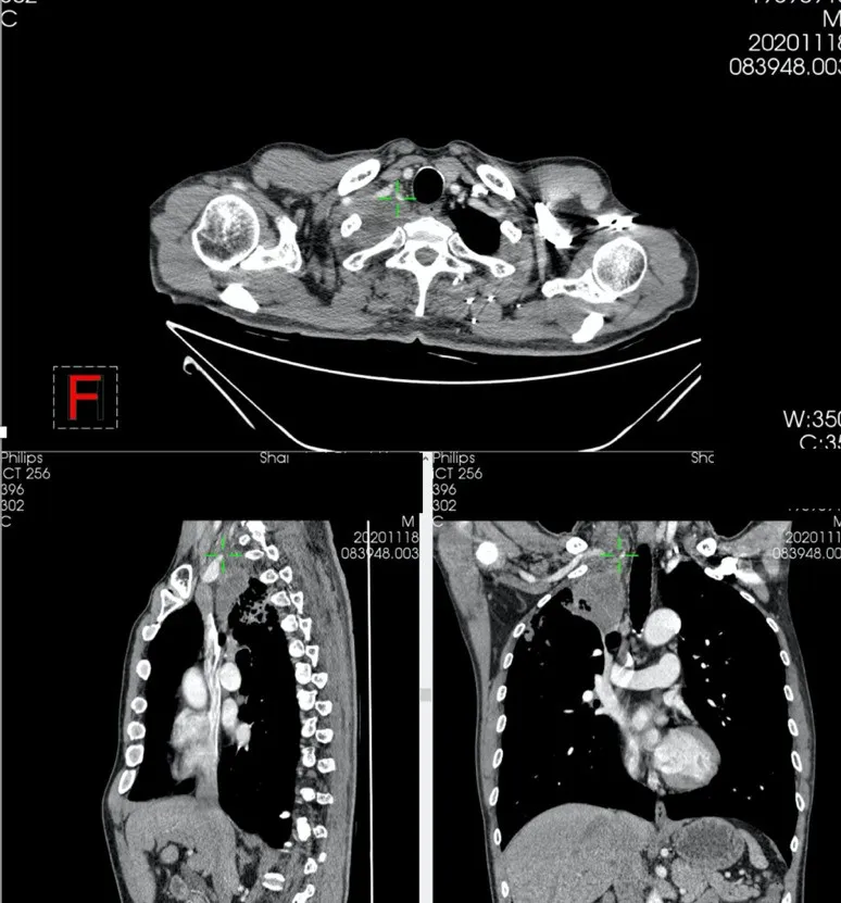 “頭臂靜脈完全被腫瘤吃掉了。”