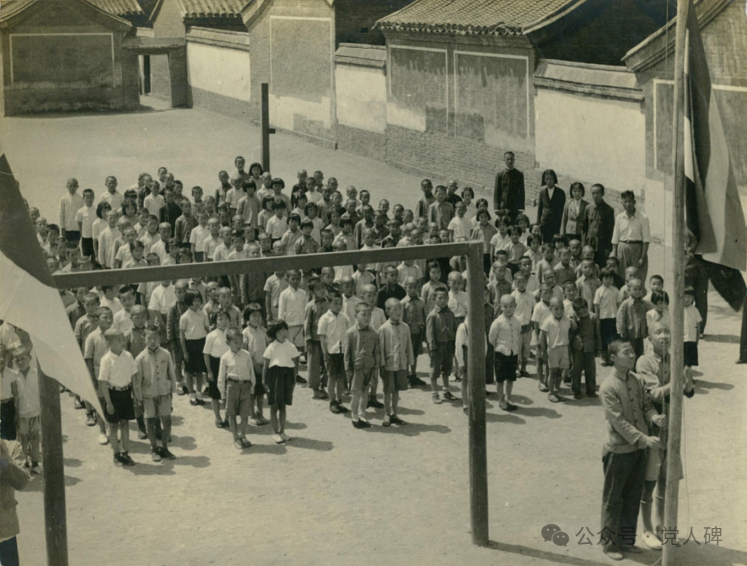 淪陷區中國孩子們升旗儀式上,左側刺眼的膏藥旗