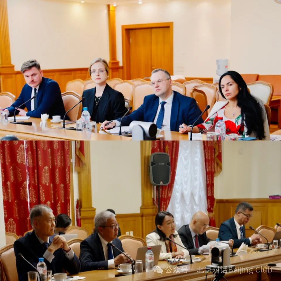 9月10日上午,代表團會見了俄羅斯外交部第一亞洲司司長伊萬·哲拉夫採夫(Ivan Zhelohovtsev)、副司長維塔利·法捷耶夫(Vitaly Fadeev)和政策規劃司副司長瑪麗亞·霍丁斯卡婭-戈列尼舍娃(Maria Khodinskaya-Golenischeva)等,雙方就亞太局勢、歐亞安全丶中俄合作等議題作進行了充分交流。吳海龍談了對亞太形勢的看法以及中俄在亞太地區共同的利益和麪臨的共同的挑戰。吳還強調,**中俄要加強民間的對話和交流,以增進兩國人民之間的瞭解和理解。北京對話作為新型智庫平台,可為推動兩國的民間對話與合作發揮重要作用。**俄司長表示,雙方在各領域的看法十分相同和相近,都致力於尋求新的發展道路,建立更為公正的全球制度。俄羅斯應該與中國保持磋商,尋找共同點。